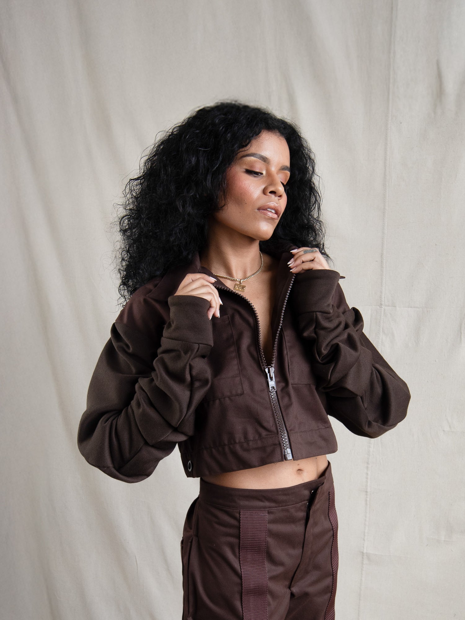 Brown - Soft and Structured Cropped Jacket