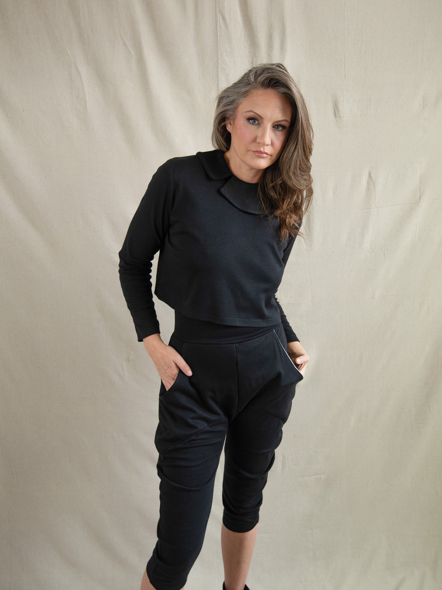 Jade Black Peter Pan Collar Long Sleeve Blouse