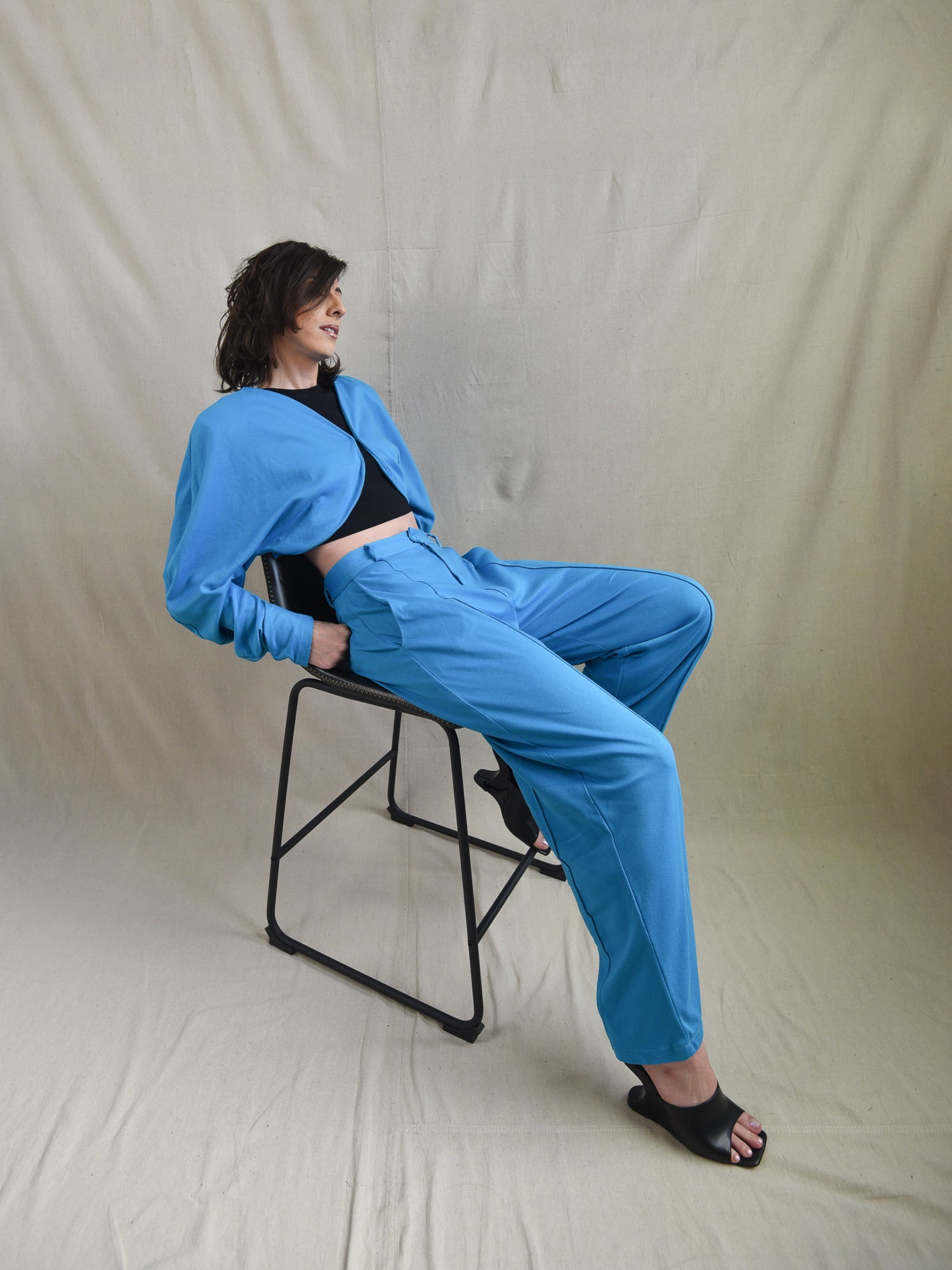 Turquoise Oversized Suit Shrug
